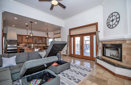 Your experience at Desert Pad is enhanced by an array of fantastic amenities designed for relaxation and fun. Enjoy the inviting pool area, perfect for lounging between events or soaking up the sun during your stay. A fully-equipped kitchen and two massive dining tables—both indoors and outdoors—make meal preparations effortless, accommodating your guests for both casual and formal dining experiences. With five dedicated sleeping spaces, including an oversized sectional with a pullout twin bed, ample space for everyone ensures restful nights after the festivities. Various entertainment options, such as a pool table and Bluetooth speakers, keep everyone entertained throughout your celebration.