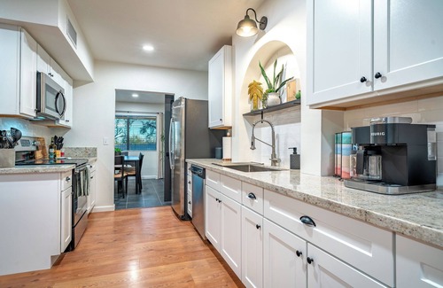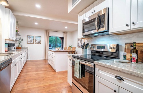 Beautiful classic private Tucson home with great mountain views. This home features a heated pool and spa for great outdoor living all year. The inside features the fastest internet speeds available and a docking station setup allowing you to easily work from this home including video conferencing. This home is located 1/2 mile from Mile Marker Zero making it a great spot for cyclists looking to ride up Mt. Lemmon. Relax with the whole family at this peaceful place to stay.