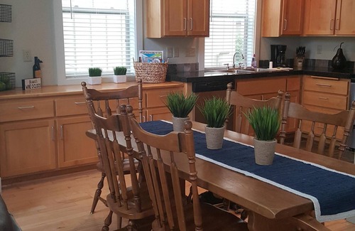 The house has a gas fireplace, three TVs and wireless internet. It's about 200 yards to the Lakeside Rec Center with kids splash park, pool and spa, and fully equipped exercise room, as well as tennis, basketball and volleyball. All available recreation facilities in Eagle Crest (including indoor tennis courts) may be used for free with the rental. Bike paths are throughout the resort.