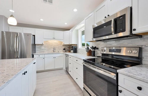 From two King size bedrooms with spa-like showers to the high end kitchen and reclining leather sofas w/USB, two smart TV's, to the outdoor Webber and amazing pool outside. You have it all! And don't forget to make your morning smoothies and happy hour margarita with the Ninja!