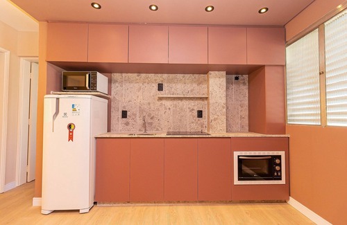 Recently renovated, Apartamento Pitaya is a pure concept, this accommodation is simply enthralling, with super trendy colors, decoration by famous artists, and an instagrammable design that makes this space completely different, in addition to being an eye candy for architecture lovers, it is spacious and complete, with living room, kitchen, double bedroom and bathroom, it is a project executed by the architect Renato Mendonça, who was right in every choice.