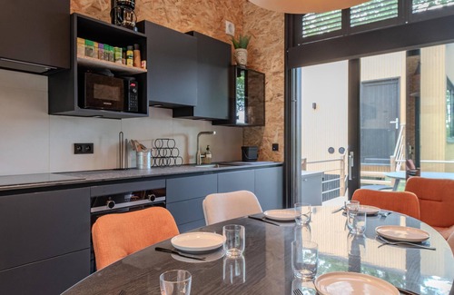 Welcome to this unique accommodation with cosy lounge and wood-burning stove, equipped kitchen with TV, wifi and Netflix. 3 double bedrooms, 2 bathrooms, extra sleeping space on the mezzanine and a unique room in the tower. Outside you will enjoy a large terrace in the countryside, wellness with infrared cabin, outdoor shower and wood-fired bathtub. Parking for 3 cars, BBQ area, bike shed and shared play park with petanque. Pure relaxation in style!