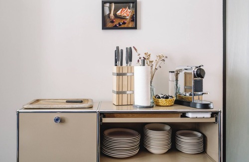 A curated selection of contemporary wall hangings, cool fixtures and top-of-line design furnishings update the heritage space, and its key location opposite some of the region’s most dramatic jagged peaks draws the eyes outward. Redesigned as the secondary residence of a prominent Zurich family in the mid 20th century, the apartment’s more recent renovations in 1989 and 2011 earned spots on television and in Architecture Suisse magazine, as well as other publications.
