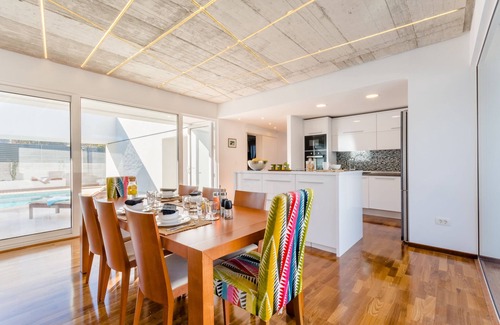 Villa has 5 bedrooms , it can accommodate 8 persons, 3 bathrooms , large kitchen, dining room and living room all together . Kitchen is full equipped, all space is air conditioned.