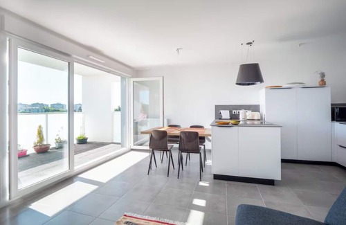 Designer apartment with view and private parking is located in Vannes. Designer apartment with view and private parking provides accommodation, featuring Fireplace/Heating, Child Friendly, Internet, among other amenities. This Apartment features Fireplace/Heating, Child Friendly, Internet, to make your stay a comfortable one.