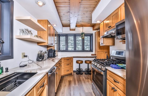 This lakefront cottage comes straight out of a movie, giving off rustic vibes with its stone exterior and incredible interior decor. The spacious full kitchen has all the stainless steel appliances you could ask for to put together an unforgettable dinner. After you've eaten, relax in the stunning outdoor Norwegian cedar sauna before you light the fireplace, lie down on the couch in the living area, and stream your favorite TV show as you fall into a food coma and drift off into sleep to the sound of crackling wood.