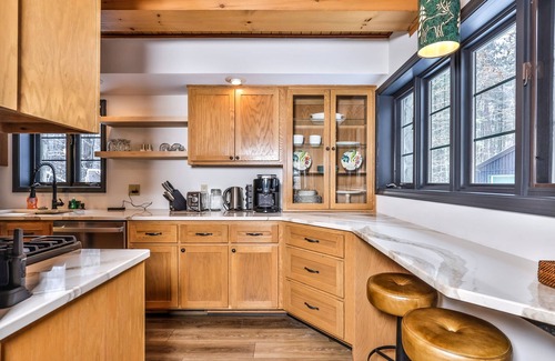 Quiet privacy, forested views, and enviable access to Statenaker Lake make this designer cottage a dream retreat. Adventure awaits no matter the season - during summer, explore one of the marked trails throughout the property or hang out on the shared boat dock. Come wintertime, enjoy snowmobiling, snowshoeing, and cross-country skiing. Make the most of blue sky days with a backyard cookout using the gas grills, then gather around the firepit when the stars come out.