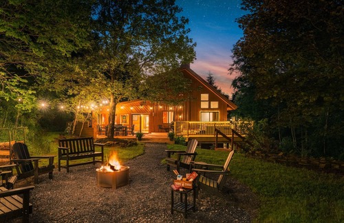 Designer Forest Escape | Hot Tub Firepit Stars | Cabin in Coudersport