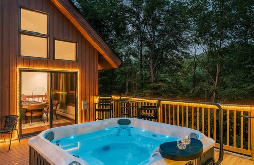 Hot Tub Under the Trees: Settle into the spa tucked privately at the edge of the deck for the ultimate stargazing soak.