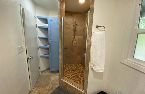 Lovely Guesthouse with Full Tennis Court, BRAND NEW Swimming Pool with diving board, Fire pit, Large lawn and garden areas, Wi-Fi, and all the cable stations available and included. Great to just relax by the pool with your family and play tennis at this mini estate; Have a BBQ, or just to watch your favorite program on the flat screen TV. Modern, newly renovated with bamboo wood flooring and maple cabinets. Spacious Bedroom with Memory foam King Bed. The living room and dining areas are warm and inviting. This house is 1 block from our city treasure, Bidwell Park. It sits on one acre which is fully landscaped. Bring your tennis rackets. The Tennis court was just resurfaced and a regulation fence is surrounding the court. The yard is also fully fenced perfect for your pets. The gazebo by the tennis courts is a favorite. The House was just completely remodeled and is ready to rent nightly or on a monthly basis of 30 days or more. Perfect as a furnished executive rental for working or enjoying.
