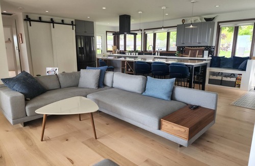 Play games on the lawn, sip rosé overlooking the lake, take a dip, enjoy a sauna, have a fire on the pier, cook up a storm in the fully equipped kitchen, or take a stroll into Wellington, where galleries, dining, bars, groceries, golf, tennis and more are just a 5 minute walk.