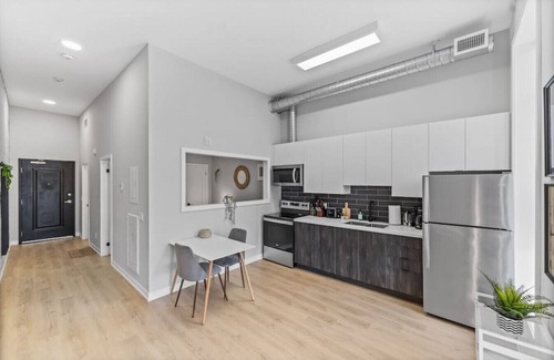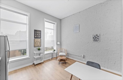Experience this brand new boutique loft designed with functionality, style, and comfort in mind. This chick designer loft with high ceilings, bay windows, 1 bedroom and a fully equipped kitchen and bathroom is perfect for short and long-term stays.