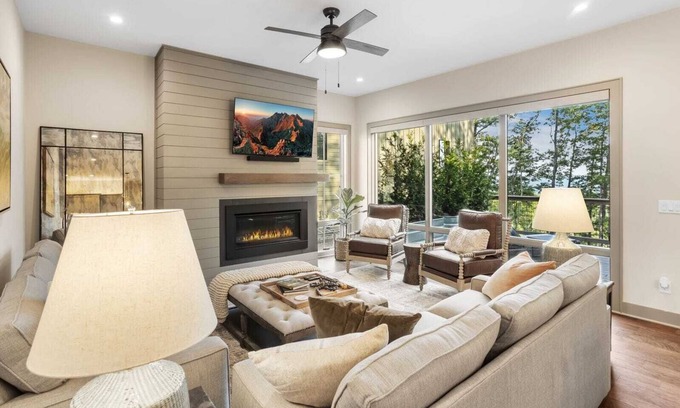 Located just minutes away from Lenoir, North Carolina, the Designer Mountain Home is ideally situated within the upscale, gated community of the Blue Ridge Mountain Club. Experience the beauty of over 40 miles of hiking trails, scenic fishing streams, and exclusive access to club amenities, including the Ascent Wellness & Fitness Center and Lookout Grill, where you can relish breathtaking mountain views. With its convenient proximity to local attractions, this designer mountain home sets the stage for a romantic getaway and a perfect wedding retreat surrounded by nature's splendor.