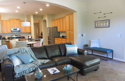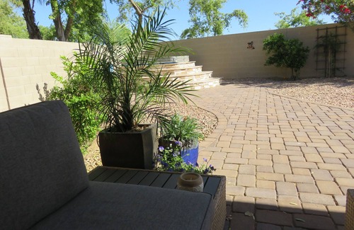 Beautiful home. Quiet, private, one level living with no steps. Huge backyard with relaxing Hot Tub, Patios and Outdoor Dining area. Close to Parks, heated Community Pool, Prestigious Golf Courses, Shopping, Restaurants, Stadiums, Theatres, Amusements and Airport. Our peaceful community features 26 miles of biking/walking paths, basketball and tennis courts, football and soccer fields and a picnic area for large get-togethers. If you just want to kick back we have stocked lakes for catch and release fishing. It is genuinely the perfect Get-a-Way place to enjoy our wonderful warm and sunny Arizona Winters.