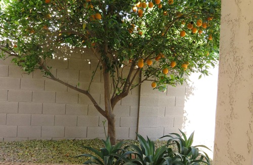 - Desert oasis with an enclosed yard, firepit, washer/dryer, and central AC