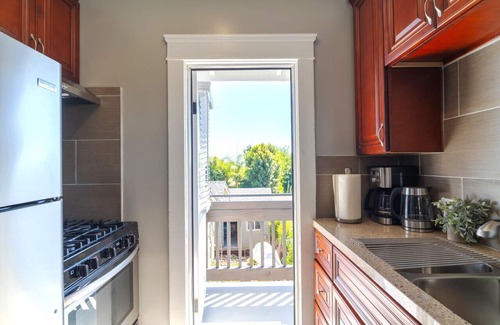 The Boutique Balboa Park Studio boasts granite counter tops, a full kitchen, king sized bed, and a tile shower with rain fixture. There is a mounted flat screen television with Netflix and free high speed Wifi internet. Free private laundry in unit.