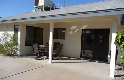 Newly renovated and new furnishings, 2 large flat screen televisions, open back yard with a nice patio for coffee or BBQ's. Split floor plan makes it comfortable and private while entertaining guests. Several Citrus fruit trees to enjoy, Great location for golf, eating, banking, shopping, etc. You won't be disappointed. Owner paid utilities include electric, water, local tv, wireless internet and trash. Everything is here....just bring your suitcases! You will not be disappointed.