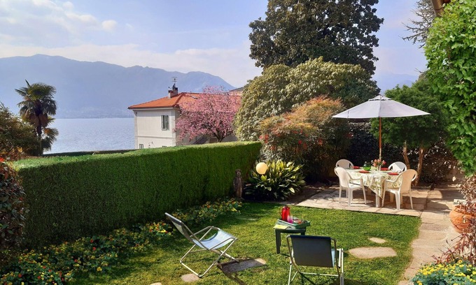 The tastefully newly furnished 3½-room holiday house "Villino Alborella" is nestled in an approximately 3. 600 m² large park on the site of a former weaving mill. The location is sunny and quiet. Distributed on about 100 m�� living space, you will find a living / dining room, a separate kitchen, 2 bedrooms and 2 bathrooms. From all rooms (except for the bathrooms) you have direct access to the garden and a beautiful view of the lake. Here you can easily switch off, give yourself to the idleness and enjoy the beautiful view of the lake and the surrounding mountains. The park with its centuries-old magnolia trees is unique in its kind on Lake Maggiore, and together with azaleas, rhododendrons and mimosa trees, it shows its most beautiful side especially in the spring. Access to the site, however, only the landlord of the house. The lake with the public swimming pool (with its own sandy beach) as well as the public beach with Liegewiese can be reached in 2 minutes on foot, and so a refreshing bath in the morning before the breakfast nothing in the way! Also for the physical well-being is provided, as groceries, bars and restaurants are within walking distance. If you prefer jogging than swimming, the lakeside promenade with its 8 km of length is an excellent route. If you are still longing for the rest of the world, a free WLAN Internet access is available to navigate the Internet. You park your car on the two car parking spaces within the enclosed property, one of which is covered. However, cars that are wider and higher than an Audi A 4 can park in the free public car park 50 meters away. House division: entrance area living / dining room with a pull-out sofa bed for 1 person, satellite TV, fireplace and beautiful view of the lake and the opposite mountains as well as exit to the garden Well equipped separate kitchen with 4 burner stove, oven, microwave and Dishwasher and a beautiful view of the lake and the opposite mountains and exit to the garden hallway bedroom with double bed (throughgoing mattress: 1.60 mx 2.10 m) and beautiful view of the lake and the opposite mountains as well as exit to the garden 2. Bedroom with 2 single beds which can also be arranged next to each other (mattresses 0,80 mx 1,90 m each) and beautiful view of the lake and the opposite mountains as well as exit to the garden storeroom Friendly bathroom with shower, bidet, washing machine and window 2 Friendly bathroom with bathtub, bidet and window Approx. 100 m² large secluded private garden with a beautiful view of the lake and the opposite mountains