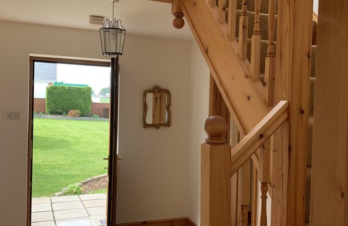 Property is situated at back of main garage overlooking a lawned garden with view of the rolling countryside.