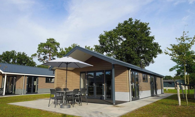 The spacious chalet Velthorst 6 is detached and has an attractive and contemporary interior. It is on the ground floor and suitable for 6 people. Some chalets can be entered via a few steps. The living room has a nice sitting area with television, a dining area and a spacious kitchen, which is equipped with a dishwasher, filter coffee maker and a combination microwave. Velthorst 6 has 3 bedrooms, 2 with 2 single beds and 1 with a bunk bed. The bathroom has a shower, toilet and sink. In the garden you have a terrace with garden furniture. You can park 1 car at the chalet and free Wi-Fi is available.