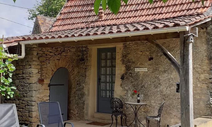 Bienvenue a 'Le Petit Nid'. un cottage independant avec terrasse orientee plein sud/ouest, a ses origines historique des temps medievale. Elle a son propre petit jardin avec pelouse, parterres de fleurs et un arbre ombrage, ca se situe dans le terrain de ma demeure en haut d'une colline, au dessus de la vallee Dordogne. Au rdc; salon/kitchenette avec deux fauteuils confortables et des meubles d'appoint. Lecteur CD/RADIO;. La kitchenette a une petite cuisiniere a gaz, un four micro-ondes, un air fryer, un refrigerateur, un evier double avec egoutoir, grille pain, bouilloire, fer a repasser, etendoir,. Batterie de cuisine, vaisselle, verrerie et couverts pour deux. Salle de douche avec meuble vasque, systeme de chauffage a eau independant, serviettes personelles et serviettes a loisir. WC separe au rez de chaussee sur la terrasse Etage: Chambre avec grand lit double et meubles d'appoint. Velux avec store et moustequaire.