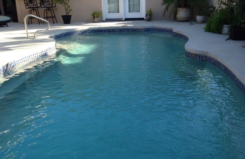 Detached guest suite has full bath, plenty of closet space ,full view of pool ,45” smart tv with YouTubeTV, WIFI, outdoor kitchen with gas cooktop ,microwave, and full size refrigerator. Separate entrance.