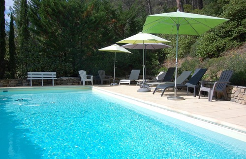 There is spacious and comfortable living room with two sofas, easy armchairs, bookshelves, coffee table, free WIFI, CD/MP3 player, and satellite TV & DVD player and video library. Smart TV including Netflix. French windows open onto a large and sunny terrace with gas Plancha/BBQ, garden and views of the village below. The terrace has ample garden furniture and a parasol for outdoor eating. They're a terraced garden of nearly an acre with thyme, rosemary, olives, cypresses and lilac.