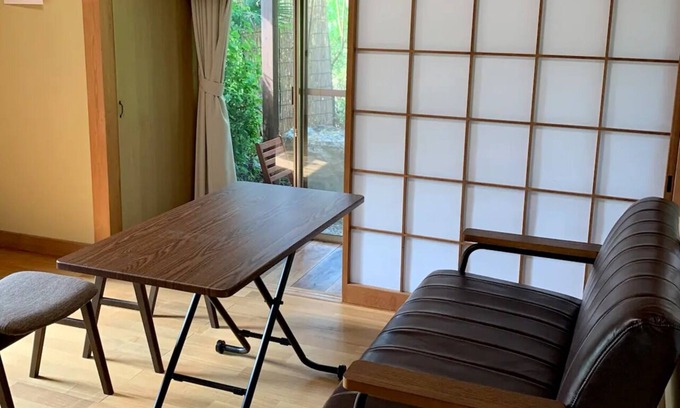 We rent out detached buildings at a ryokan in the middle of nature at the foot of Mt Fuji The buildings are scattered across a large site There are also rooms where you can keep pets and rooms where you can enjoy BBQs and bonfires Our own home is on the same site so we can handle any problems you may have / This is a detached house There is a BBQ facility on the terrace Everything you need is provided including a workspace refrigerator toilet and bath Please use it for various purposes longterm stays workcation bringing pets The toilet bathroom and tatami mats were renovated in October 2024 BBQ and pets are charged separately