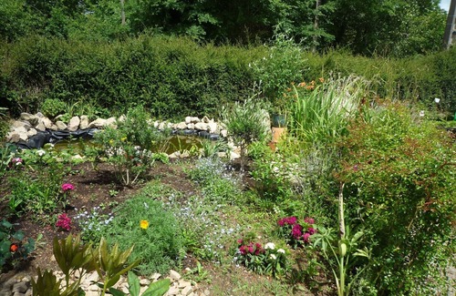 You will discover a living room open onto a sunny veranda, open view of the wooded, flowered grounds and the forest.