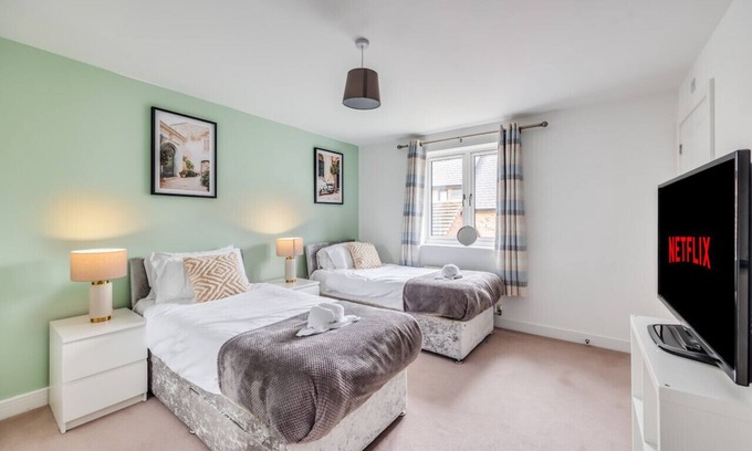 - Serviced 2-Bed Home in MK, Walk to Train, City Shopping, Santander & Network Rail HQ, Parking & WiFi Included Webbhill Stays