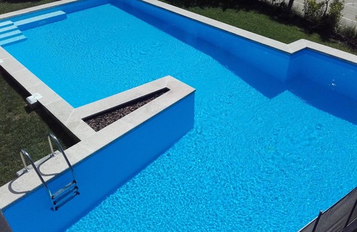 It is a very pretty house, adorned with slate stone, and with a fenced garden of 2000 m2 . Inside the property there is a swimming pool for the exclusive use of guests (also fenced for safety), a huge pool for a detached house, with 140 m3 (140.000 liters) of water. The pool contains slightly salty water to improve the well-being of bathers (saline chlorination) as well as night lighting. In the garden, there is barbecue, a picnic area, a large trampoline for children, a two-story wooden house for the children, a ping pong, a fireplace and arenal to play. It is a house perfectly suited to enjoy the holidays, with everything that a family may need for several days.