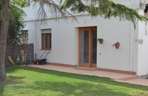 Independent house with tree-lined garden and lawn of 400 square meters, equipped with barbecue and shower area; the four beds are divided into two bedrooms, one with a double bed and one with two single beds. Two bathrooms, one of which in the bedroom, both with shower. Living room with kitchenette.