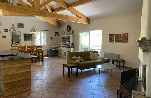 A large living room of 60m2: fully equipped open kitchen, its lounge area with sofa TV DVD HIFI and its dining area. Internet connection. The house contains all the baby equipment (bathtub, baby walker, travel cot, deckchair, etc.) Two barbecues are at your disposal, one with gas and one with wood.