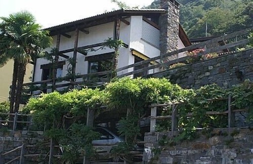 Detached 4 1/2 Zi. House (Casa Civetta) with vines and typical Ticino masonry for 6 to 7 people at Via Casenzano 25 in 6575 Vairano / San Nazzaro. Romantic garden with palm trees and shrubs; Playground and lawn with gorgeous, unobstructed views of Lake Maggiore, Ascona / Locarno and the mountains. Covered pergola; Granite table in the open under the palm trees.