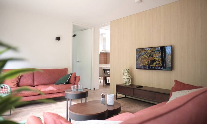 The interior of the accommodation can differ slightly from the pictures. However, the level of comfort is as described Reservations for groups of persons under 21 years of age are not permitted This holiday home is available for recreational purposes only. Bookings on behalf of companies will be cancelled and possible cancellation costs will be charged This accommodation is located in a holiday park. There are multiple units. To book more than one unit, please contact us via chat. Pets other than dogs are not permitted.