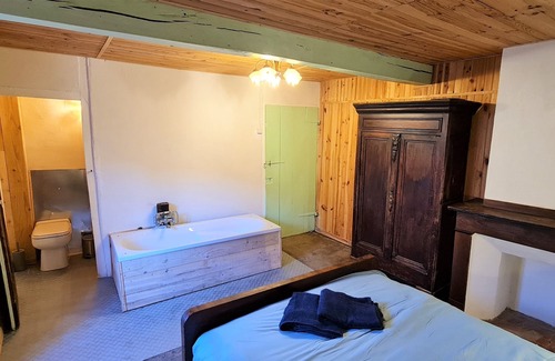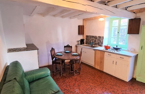 The charming old house is small but equipped with all the basics and recently renovated. On the ground floor there is a wood stove (free wood is provided), an equipped kitchen, a fridge freezer and a washing machine. Upstairs is a bedroom with heating, a double bed, a bath and toilet en suite. You will have the house completely to yourself: it is detached so there are no direct neighbors and the owners are not there.