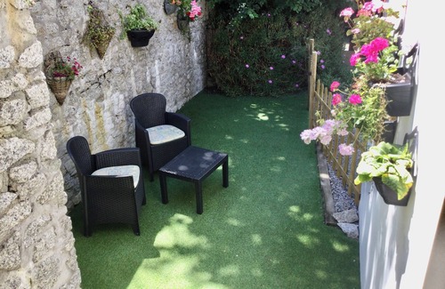 Outside there is a secure, gated parking area adjacent to a dedicated, private garden area. This has seating and a small table, ideal for relaxing.