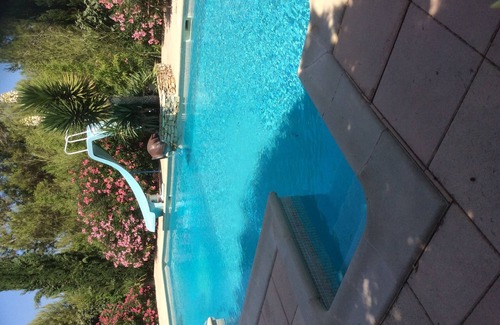 Authorized access to the property's swimming pool, car park under the pines in the fenced property. Entrance property with remote controlled gate.