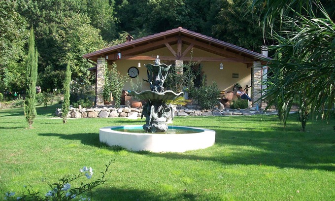 Bungalow 12o m2 area. Ideal for families with children and pets. A parkland 5ooo m2 surface, also for games and sports, golf tee. After the pool visit many opportunities for sunbathing and panoramic view of the wooded mountain landscape. Adventure trails to the river and the mountains, a paradise for big-city children.