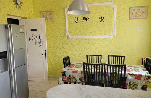 Located in Ḩawmat al Badawīyīn, this 3-bedroom, 1-bathroom vacation home lets you experience it all. Fans of nature and the outdoors will love being 18 minutes by car from Sidi Mehrez Beach and 47 minutes from Oamarit Beach. If you'd like to explore the area, you can make the 10-minute drive to Djerba Explore Park or the 14-minute drive to Djerbahood.