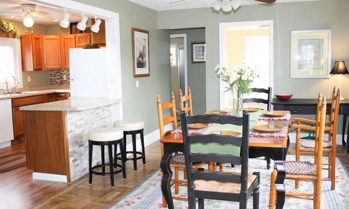 This beautifully restored vintage early 1920's home has all the amenities to make you feel at home. Nestled in the sleepy Village of Manitou Beach (Devil's Lake) Irish Hills area, Trillium house is within one block walking distance of summer Saturday Farmers Markets, two unique boutiques (Michigan Gypsies, Devils Lake Living, Lakeside Cafe, Two Lakes Tavern, and a public swim area within several blocks. We are also in close proximity to Michigan International Speedway. We also offer you boat lake access for nominal overnight docking fee and responsibilities for your watercraft within walking distance of the property should you have your own watercraft or if you are renting from Rob's Rental during your weeks visit at 517-673-3620. The house has a lovely new cement side patio with gas grill and the back yard hosts a fire-pit for your evening family get together. Next to the home is a open yard which is part of the property providing privacy.