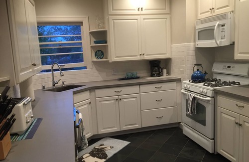 You'll enjoy comforts ranging from a plush king bed in the master bedroom, TVs in all rooms, a movie library, books, magazines, Apple TV so you can access your music or rent a video, all hooked up to the Bose system, endless CABLE channels. Cook your dinner in the fully equipped kitchen. Use the wine cooler to keep your wines the perfect temperature during your stay. Relax sipping Cabernet on the deck looking out at the stars. Take one of the bikes or go for a walk to downtown.