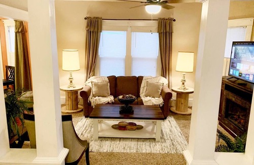 Welcome to Dexter, Missouri ! Stay in our home that is only 1.5 miles from Highway 60 and Highway 25, and only 2 miles from Dexter's infamous Hickory Log Restaurant. During your stay enjoy a fun game of foosball with the family, while you enjoy free Wifi and a cozy fireplace to sit by while watching movies on Netflix. This comfortable and clean home is tucked back into a quiet neighborhood where you can enjoy a safe walk around as well as a nice evening in your private back yard of this home.