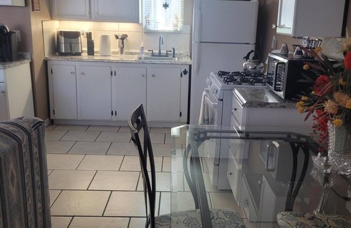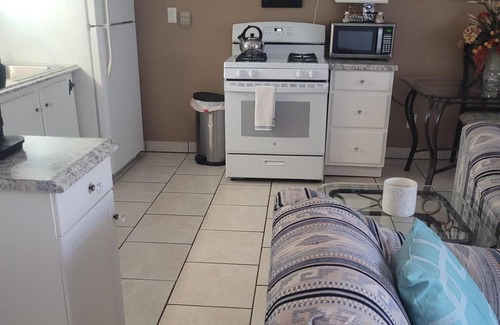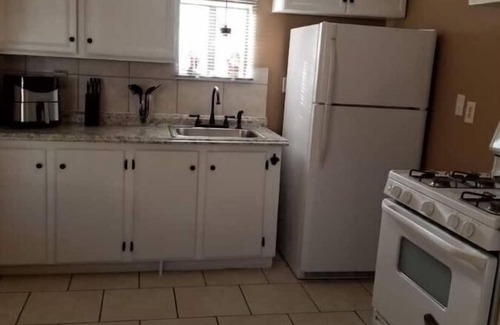 Relax with the whole family at this peaceful place to stay. Come and relax with a large TV in the living room and smaller one behind the mirror in the Master Bedroom. In Belen City Limits - 35 miles South of Albuquerque - Quiet and secure - AC and heater unit in Master Bedroom - AC unit in the main living area, and gas heat for the rest of the cottage. Gas cooking - ice maker in the freezer. Covered parking for up to 2 cars. More parking available next to the house. Small, private and cozy too!