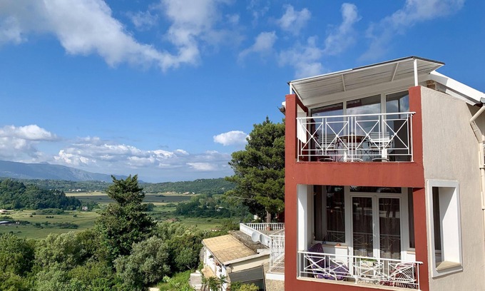 Located on the secluded hill overlooking the Ermones bay, the complex offers a stunning panoramic view of the sea, mountains and a valley. The location is quiet and beautiful. It is situated on the west side of the island 100 m above the level of the sea. The closest beach is less than 1 km. There you can find some Greek taverns where you can enjoy your food with the glass of wine breathing in the fresh sea air.