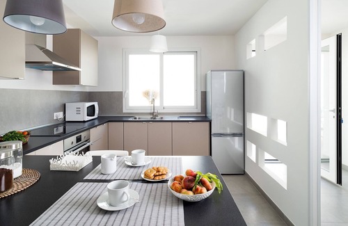 Furnished with taste, these comfortable apartments come with private terrace, parking space, air conditioning, Wi-Fi, satellite TV, dishwasher and washing machine.