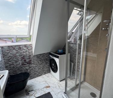 Die Terrassenmaisonette mit Stil offers accommodations in Jesewitz, 10 miles from Leipzig Central Station and 11 miles from Leipzig Trade Fair. This property offers access to a terrace and free private parking. Georg-Friedrich-Haendel Hall is 31 miles from the apartment and Marktplatz Halle is 31 miles away. With free Wifi, this 1-bedroom apartment features a flat-screen TV, a washing machine, and a fully equipped kitchen with a dishwasher and toaster. Towels and bed linen are available in the apartment. The property has an outdoor dining area. Panometer Leipzig is 12 miles from the apartment, while Ferropolis – City of Steel is 27 miles from the property. Leipzig/Halle Airport is 16 miles away.
