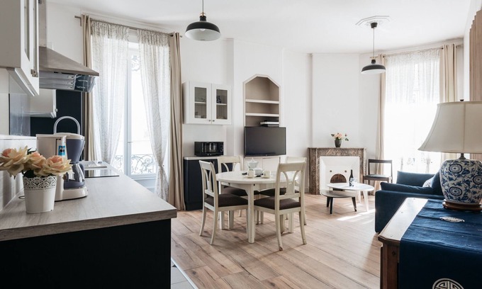 Best-rates for the Jules Ferry - Recamier apartment starts from $185 per night with includes Air Conditioner, TV, Balcony/Terrace, Security/Safety, Bedding/Linens, Wellness Facilities, Fireplace/Heating, Child Friendly, Internet, Kitchen, Laundry with all other amenities. Perfect for Weddings is committed to ensuring every guest experiences a comfortable and extraordinary stay, whether planning a romantic getaway, a honeymoon, a pet-friendly stay, or celebrating with the entire wedding party.