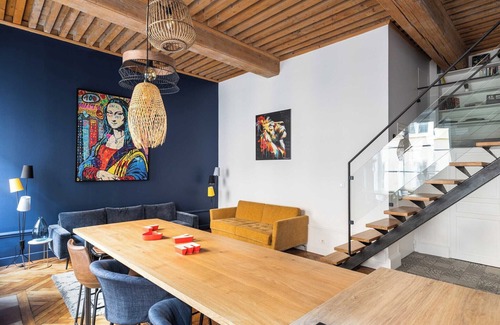 Stylish apartment of over 100 sq.m with lots of character, including exposed beams. The apartment consists of 4 bedrooms with private bathrooms. you will be a 5-minute walk from the Croix Paquet metro station and 10 minutes from the Hôtel de Ville metro. If you arrive by car, paid parking spaces are available just next to the building depending on availability or at the LPA - Hôtel de Ville car park (Place Louis Pradel, 69001 Lyon), the closest to the apartment (about 30 euros per day), less than 10 minutes walk. Attention, on the way up. A security deposit of EUR 150,00 will be required closer to your check-in date. You will receive a separate communication with the payment link. The security deposit ensures a smooth stay and covers any additional services such as cleaning, service charges, consumption, damages or any additional charges incurred during stay. Any balance from the deposit will be refunded within 21 days after checkout.