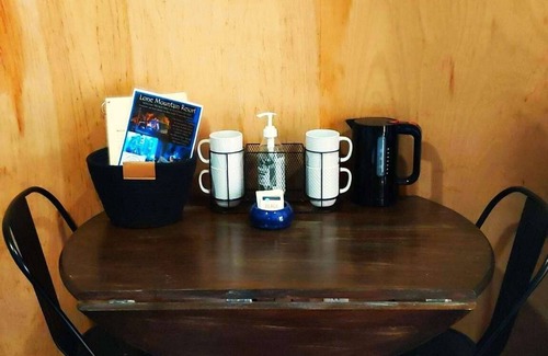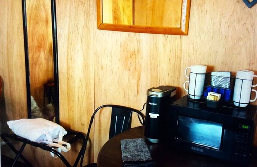 You should also know that this cabin has bottled water in the fridge but no running water. A drinking water tap is nearby, and the restrooms have coin-operated showers that cost $3.00. There is a change machine in the front of the resort in our guest laundry room. You'll receive more details with the guest guidebook message I'll send before your arrival.
